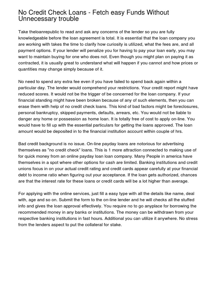 No Credit Check Loans Fetch Easy Funds Without Unnecessary Trouble