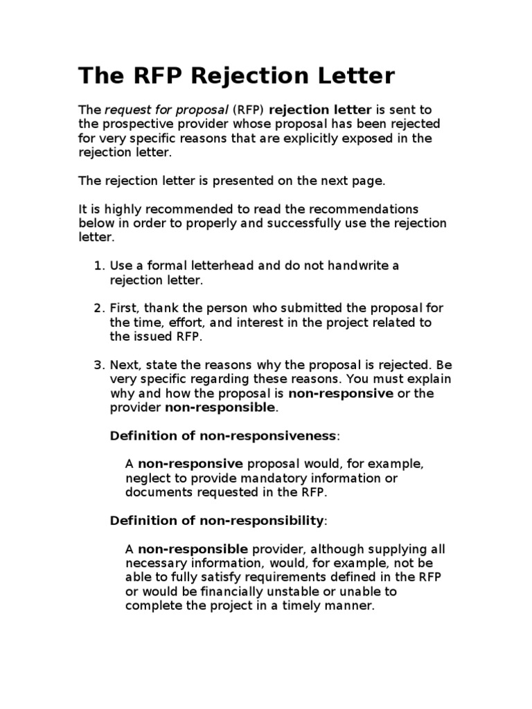 Rfp Rejection Letter Template