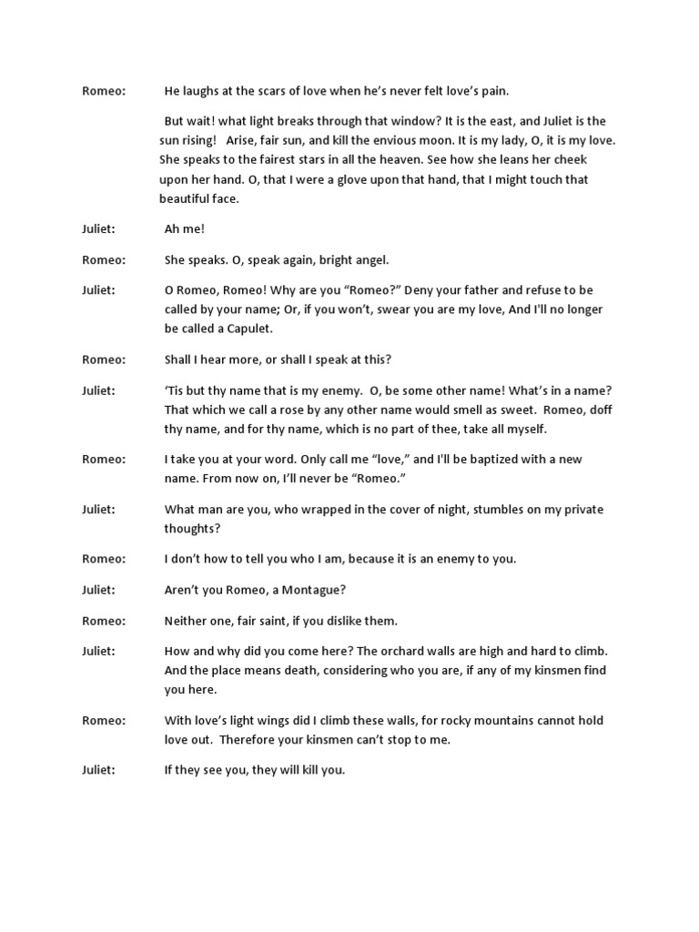 Romeo & Juliet Script (Act 2 Scene 2) Balcony scene Juliet