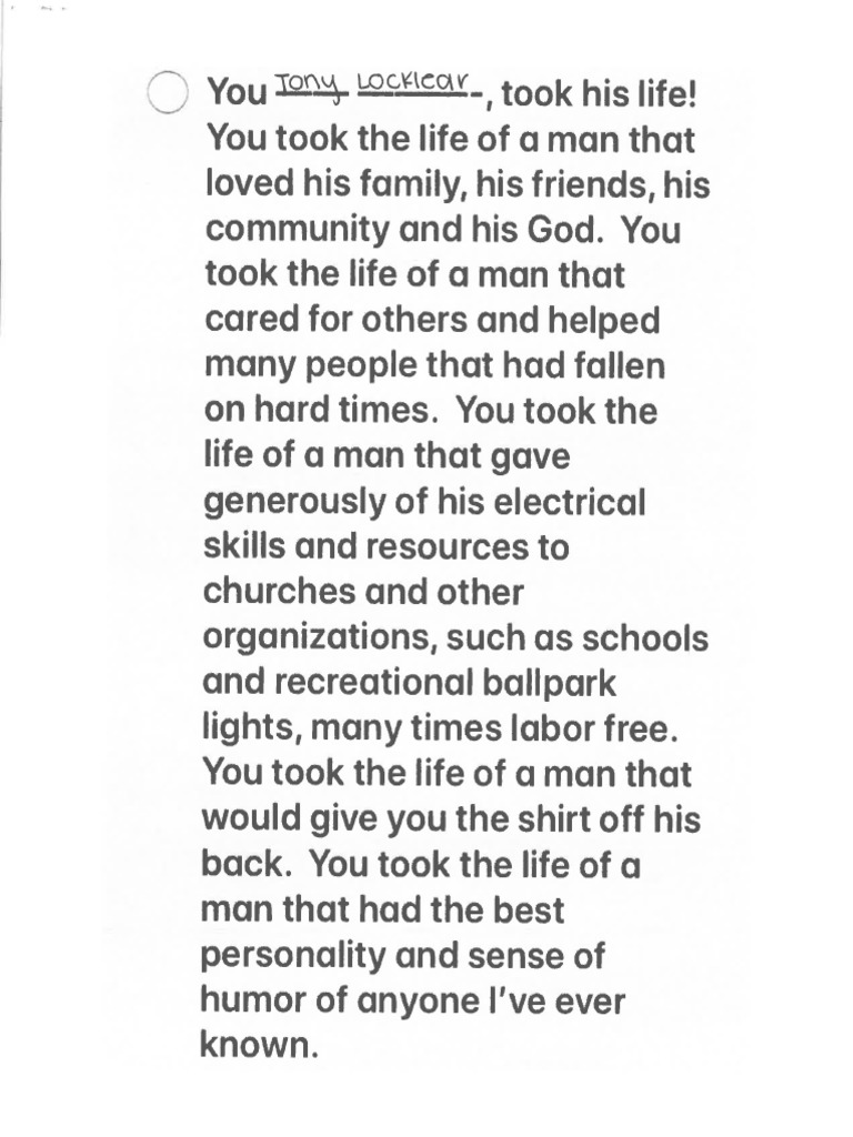 Sample Victim Impact Letters