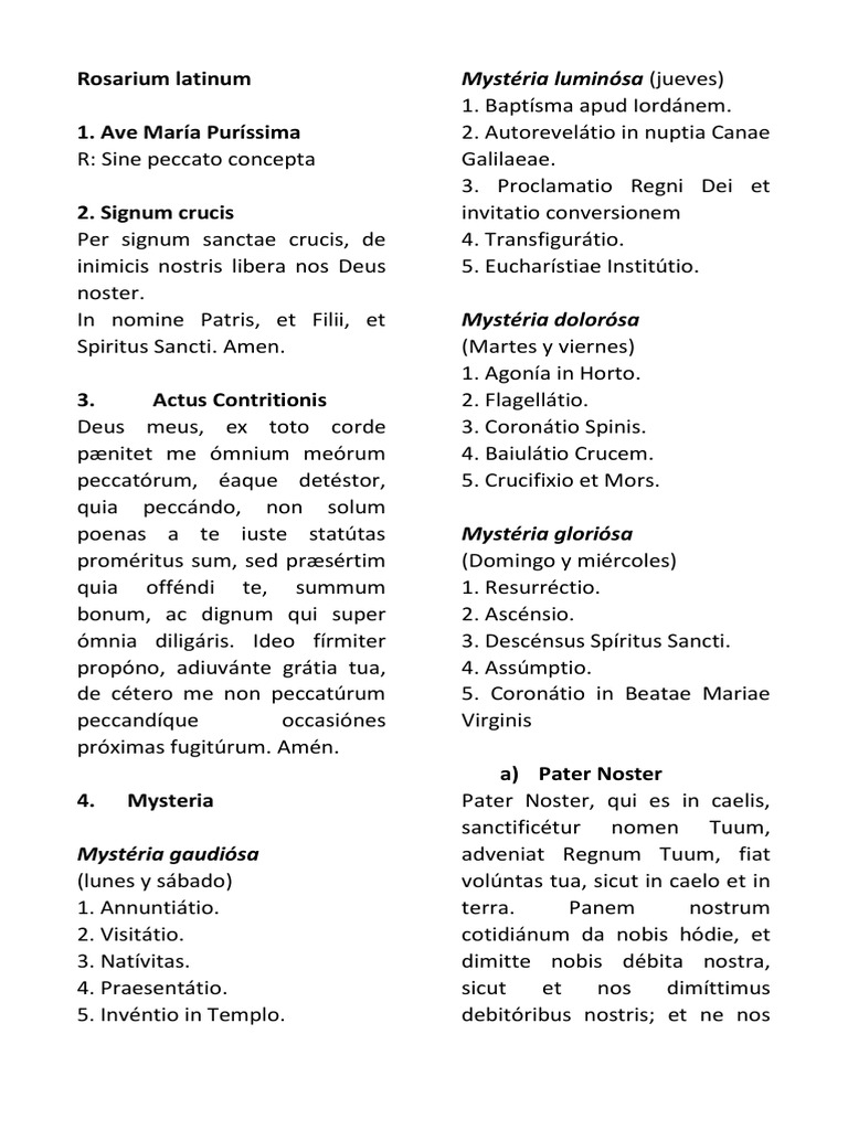 Primero miraremos las oraciones que necesitamos saber. A continuación, intentaré presentarles completo el santo rosario en latín.