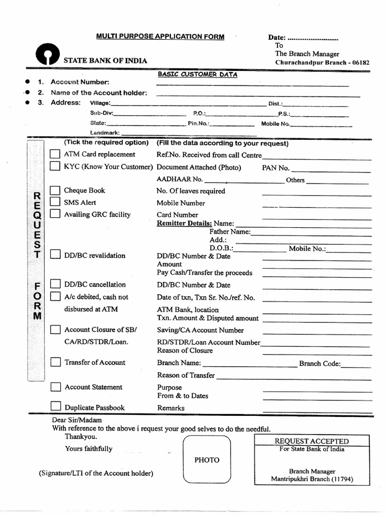 State Bank Of India SBI KYC Form PDF Download
