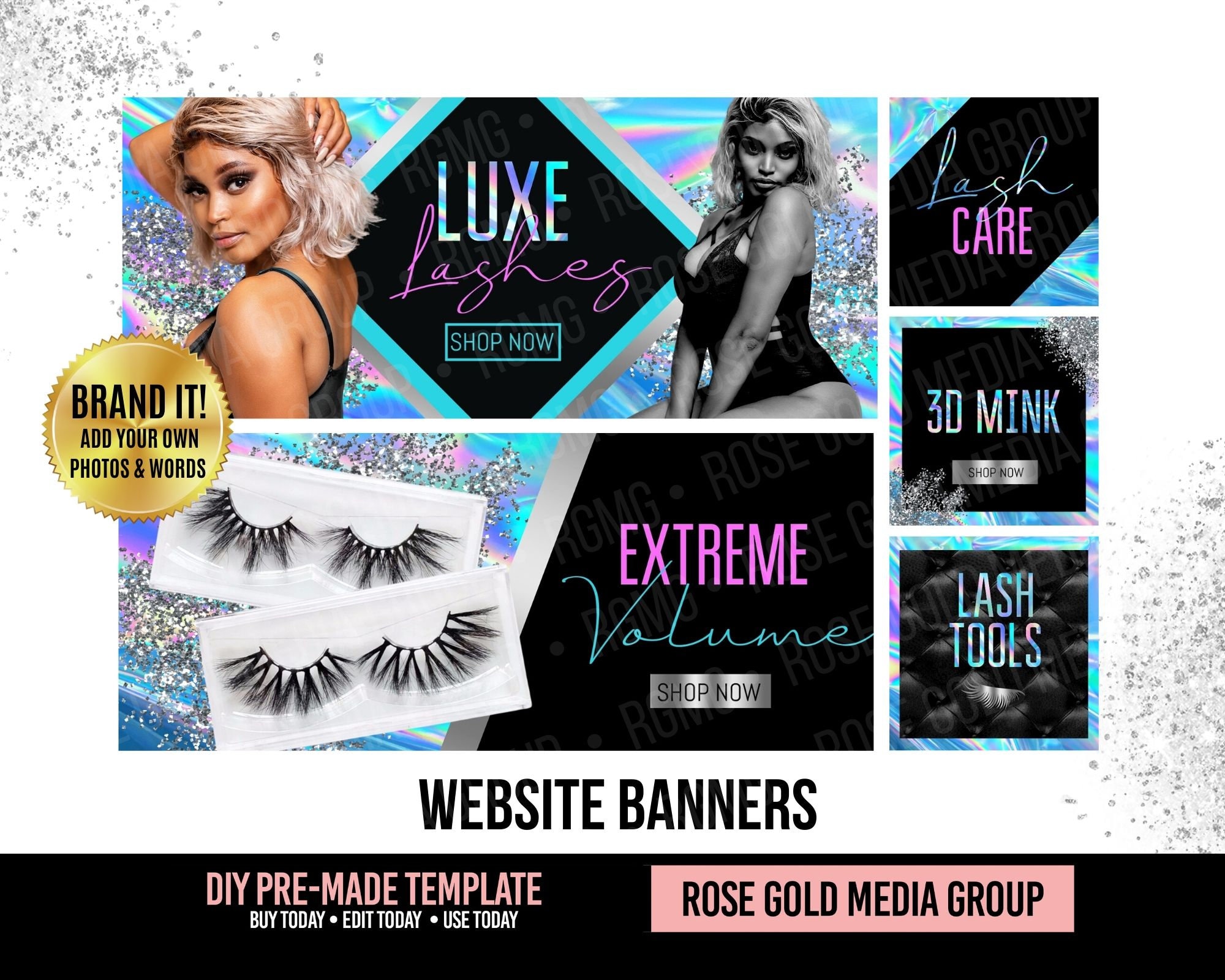 DIY shopify web banners set Black & Diamonds Luxury web Etsy