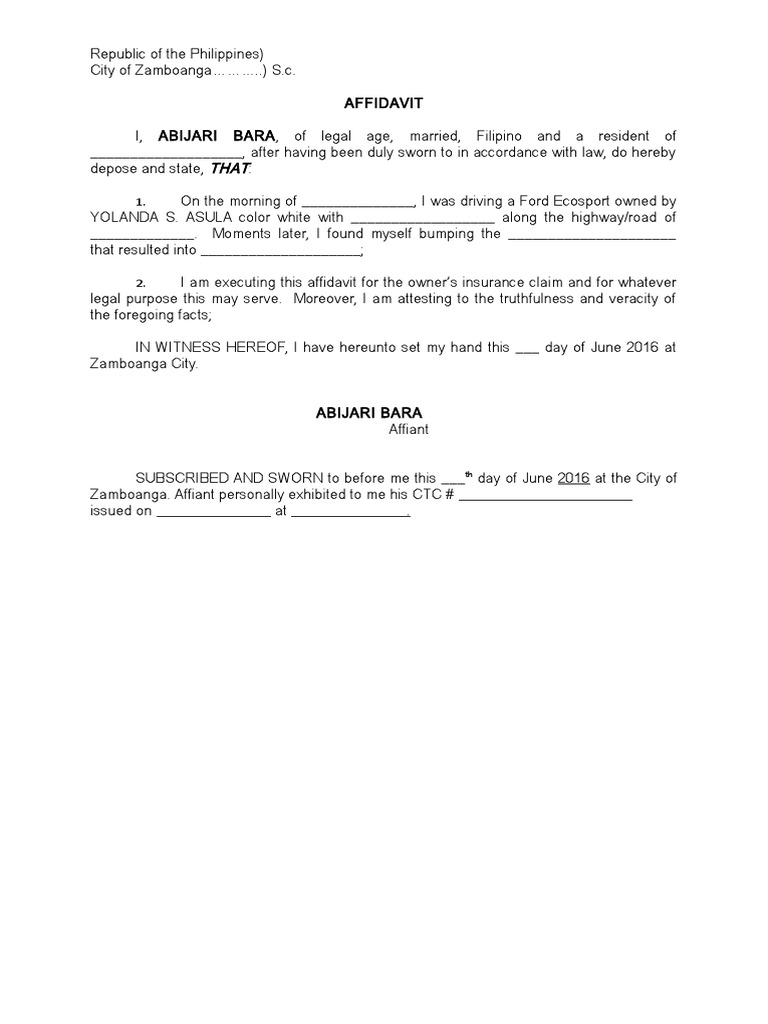 Affidavit Claim PDF Affidavit Philippines