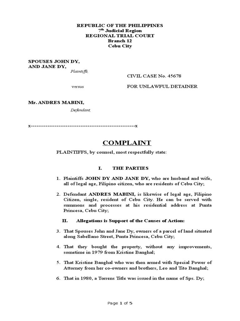 Included on this page are forms for filing civil complaints, private criminal complaints and notices of settlement when cases are privately. The plaintiff is the person(s) filing the claim. Filing a case in small claims court requires specific forms to outline your dispute and notify the other party. All complaints are filed by the first filing unit, 1339 chestnut street,.