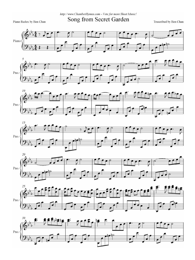 Song From The Secret Garden Piano Sheet Music - Share, download and print free sheet music of. Browse our 19 arrangements of song from a.