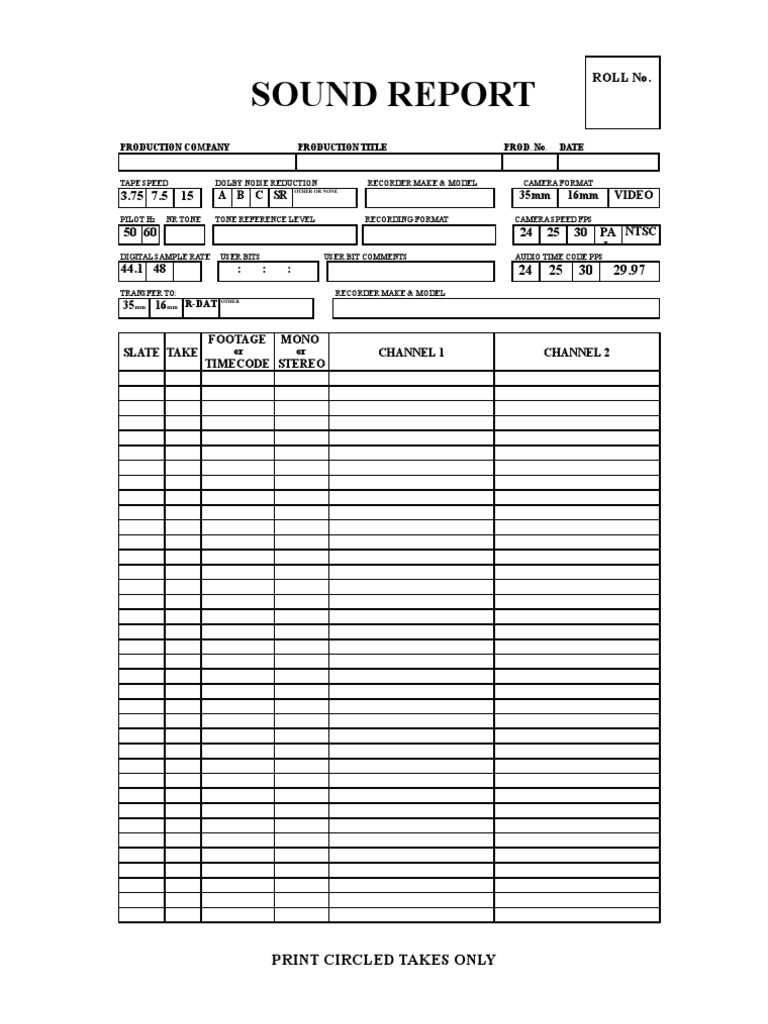 Sound Report Template (1) PROFESSIONAL TEMPLATES Filmmaking, Film