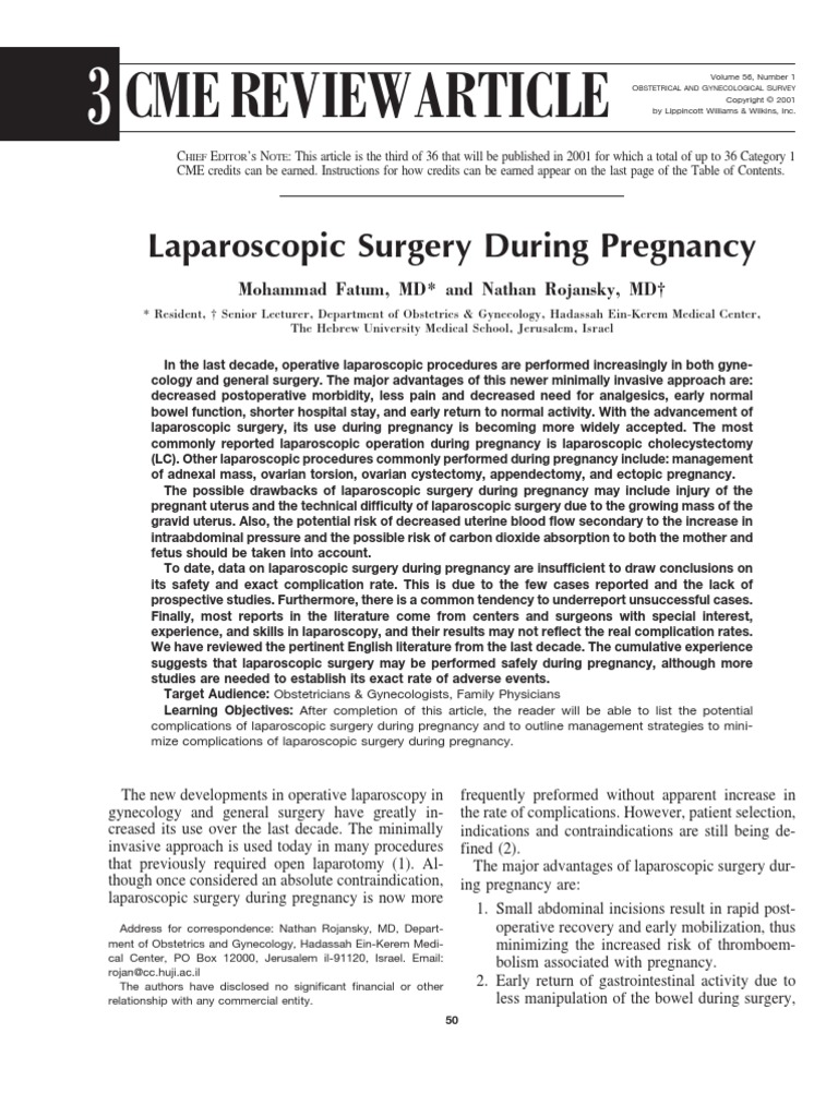 Laparoscopic Surgery During Pregnancy PDF Pregnancy Miscarriage