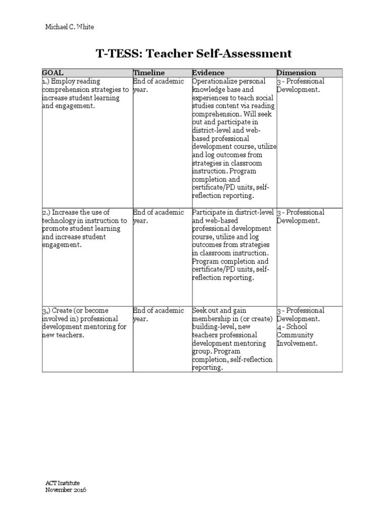 TTESS Teacher SelfAssessment Goal Timeline Evidence Dimension PDF