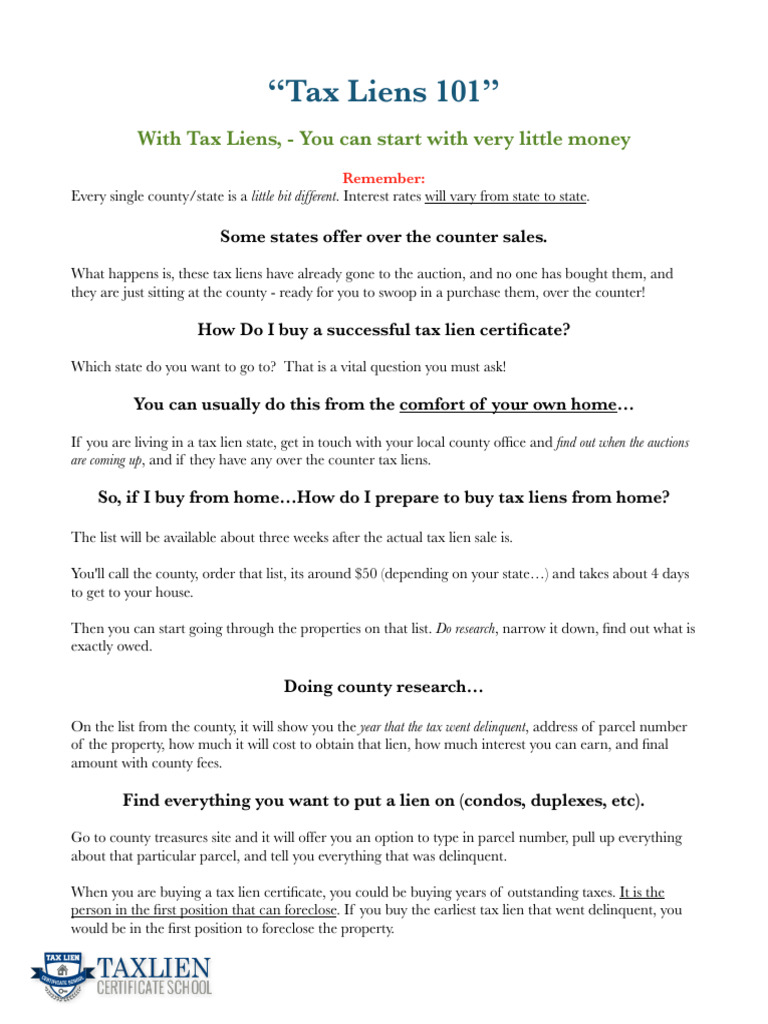 TaxLienInvesting101Handout PDF