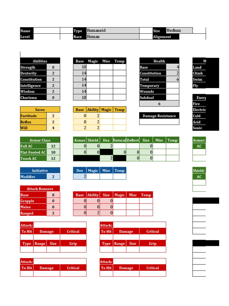 Coloured Sheets by VinceEPX Character sheet template, Dnd character