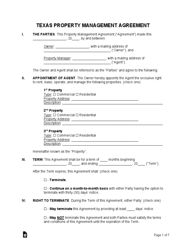 Texas Property Management Agreement PDF Lease Leasehold Estate