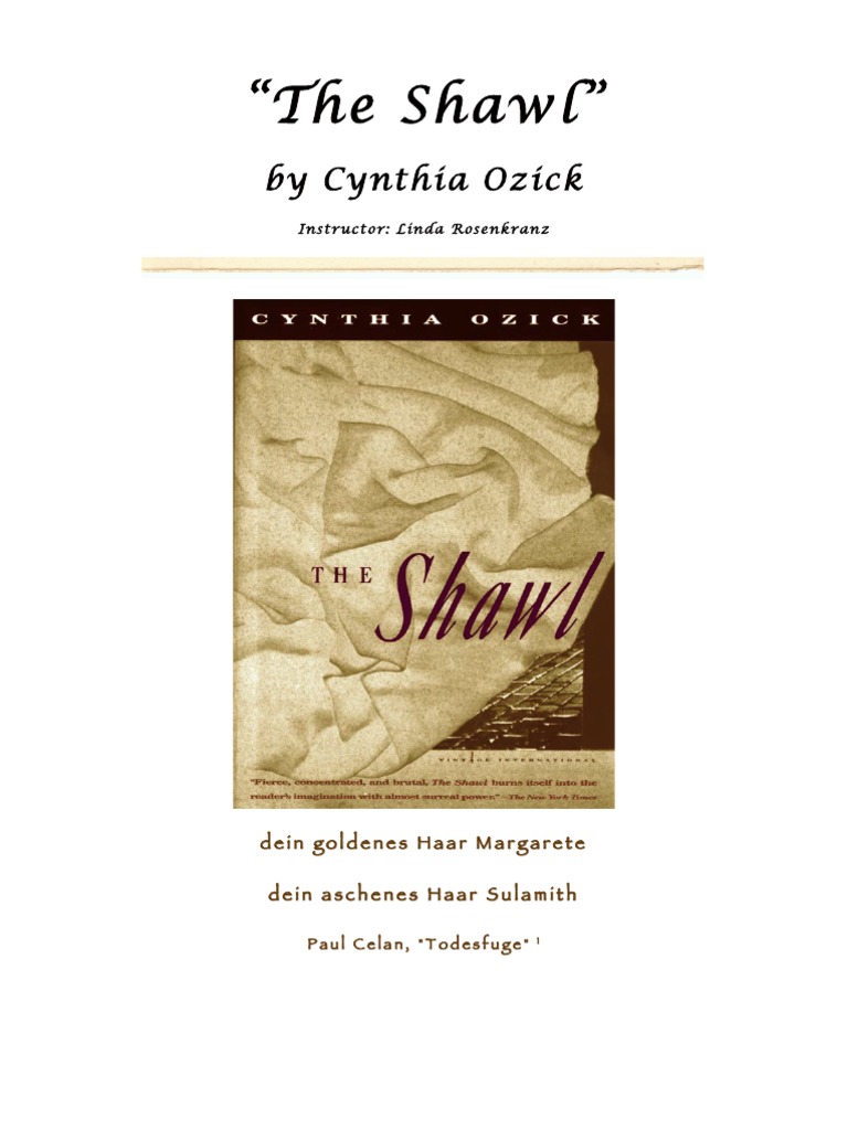 The shawl is a powerful and haunting short story written by cynthia ozick, which was first published in the new yorker in. A starving young teenager struggles to survive with her infant on their march towards a nazi concentration camp. Every day magda is concealed under the shawl against a wall when everybody else is put into the line. But.