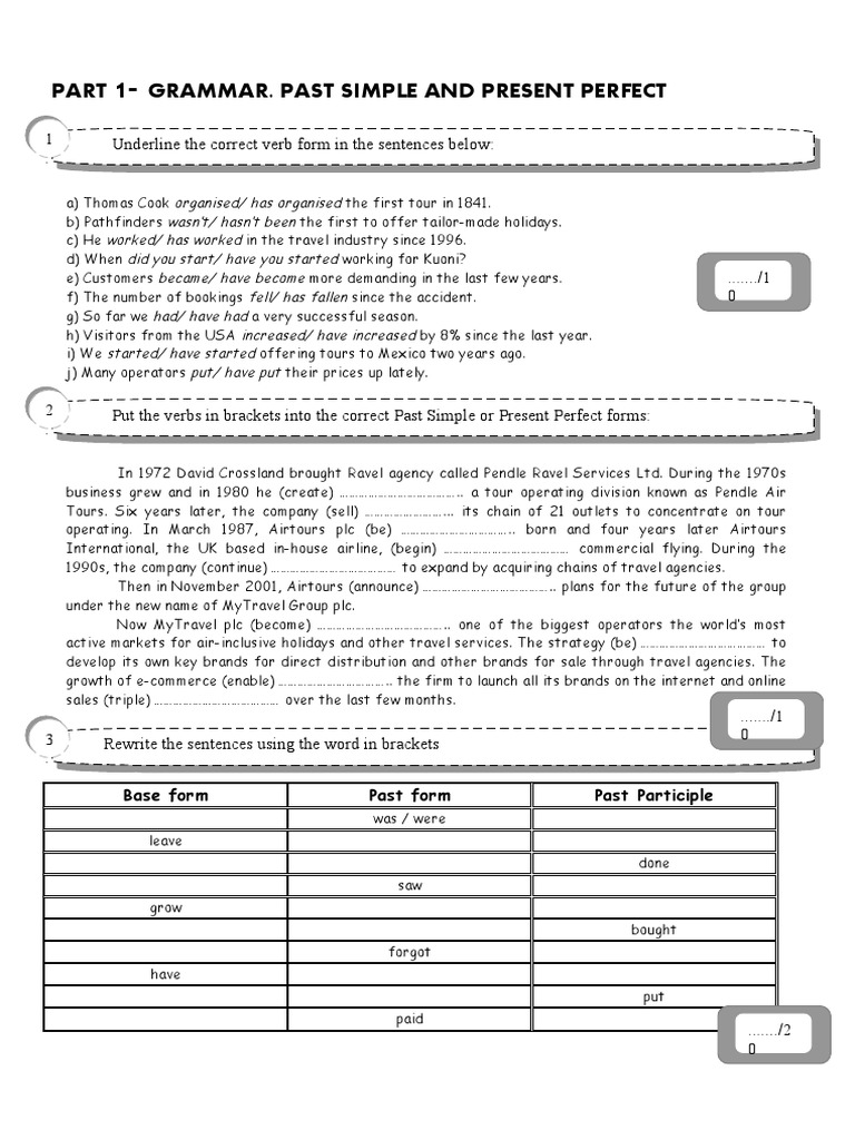 Grammar. Past Simple and Present Perfect Underline The Correct Verb