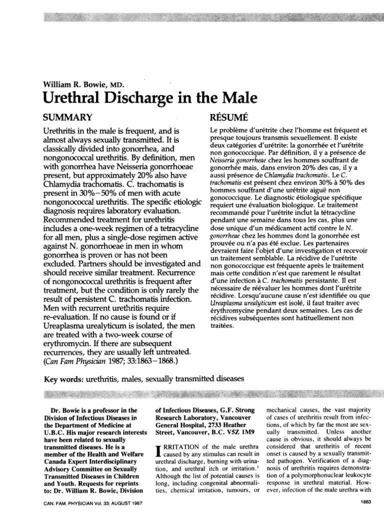 Urethral Discharge in Male, 1987 PDF Medical Specialties Public