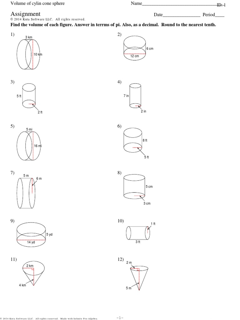 Volume Of Cones Cylinders And Spheres Worksheet Kuta Software Math