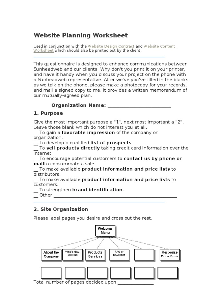 Website Planning Worksheet Web Page Websites