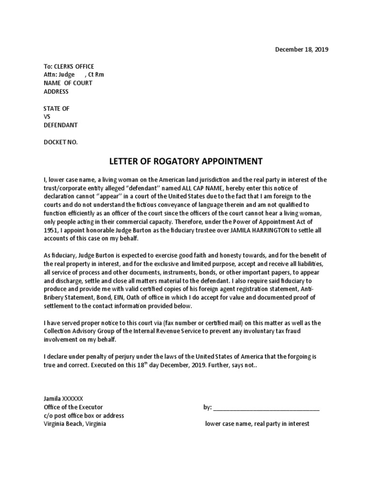 Letter rogatory / letter of request for judicial assistance. A letter rogatory is a letter of request from a court in one country to a court in another. It asks for help in gathering evidence or. A letter rogatory is a request from a judge in the united states to the judiciary of a foreign country requesting the performance of.