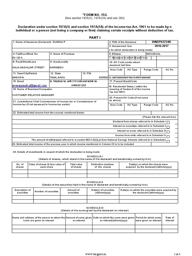 "Form No. 15G (See Section 197A (1), 197A (1A) and Rule 29C) PDF