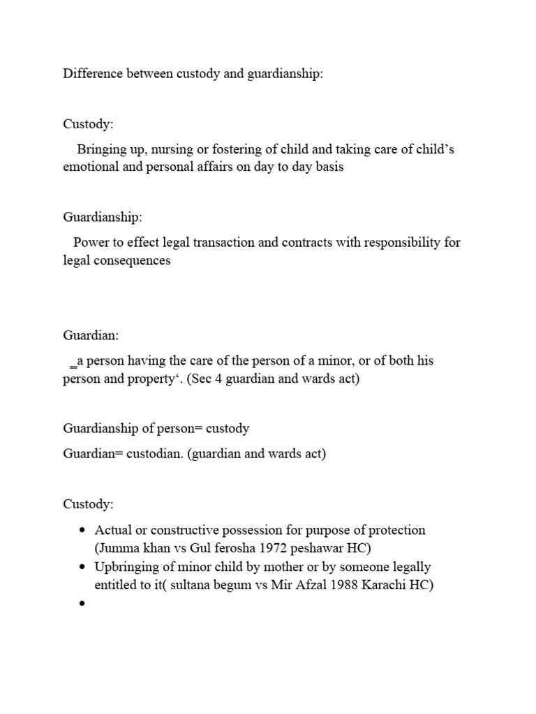 Difference Between Custody and Guardianship PDF