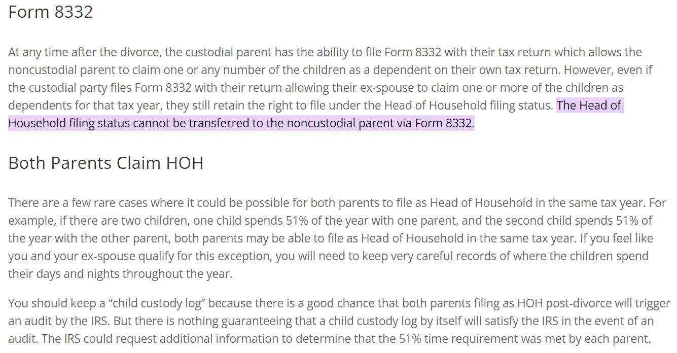 Re HOH Status and 8332 Form Intuit Accountants Community
