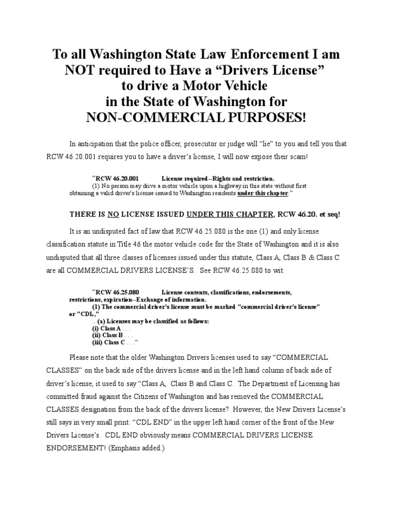 No License Required Washington PDF Driver's License Transport