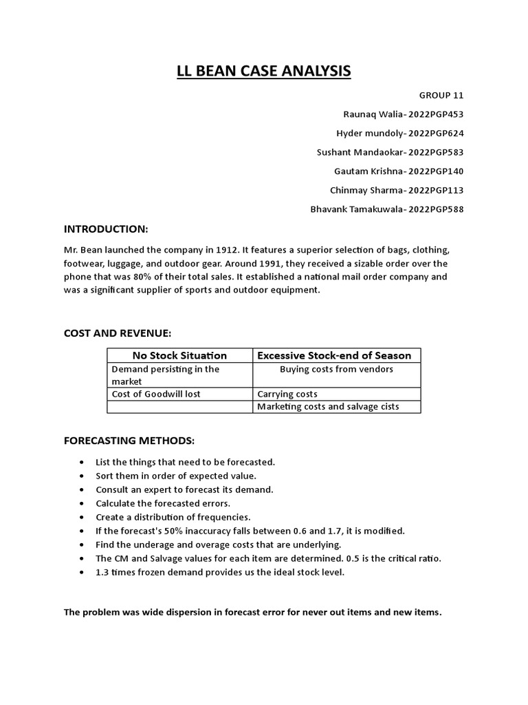 LL Bean Case Analysis Group 11 PDF Forecasting Stocks