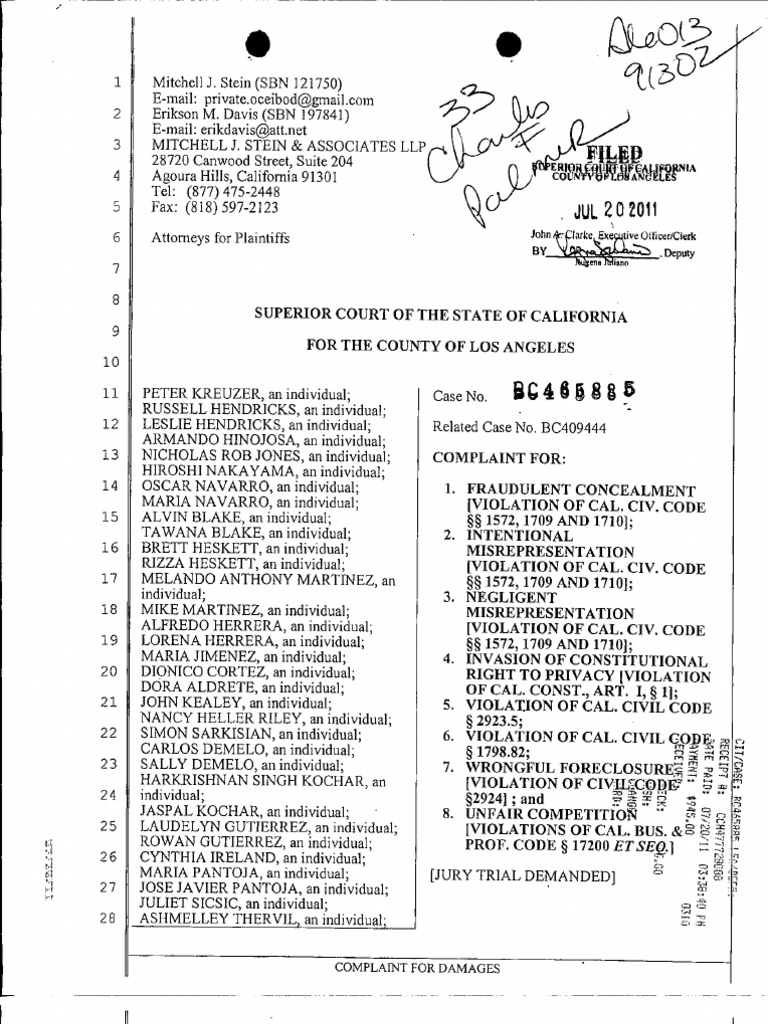 California Complaint for Wrongful Foreclosure, Fraud, 17200 Violations